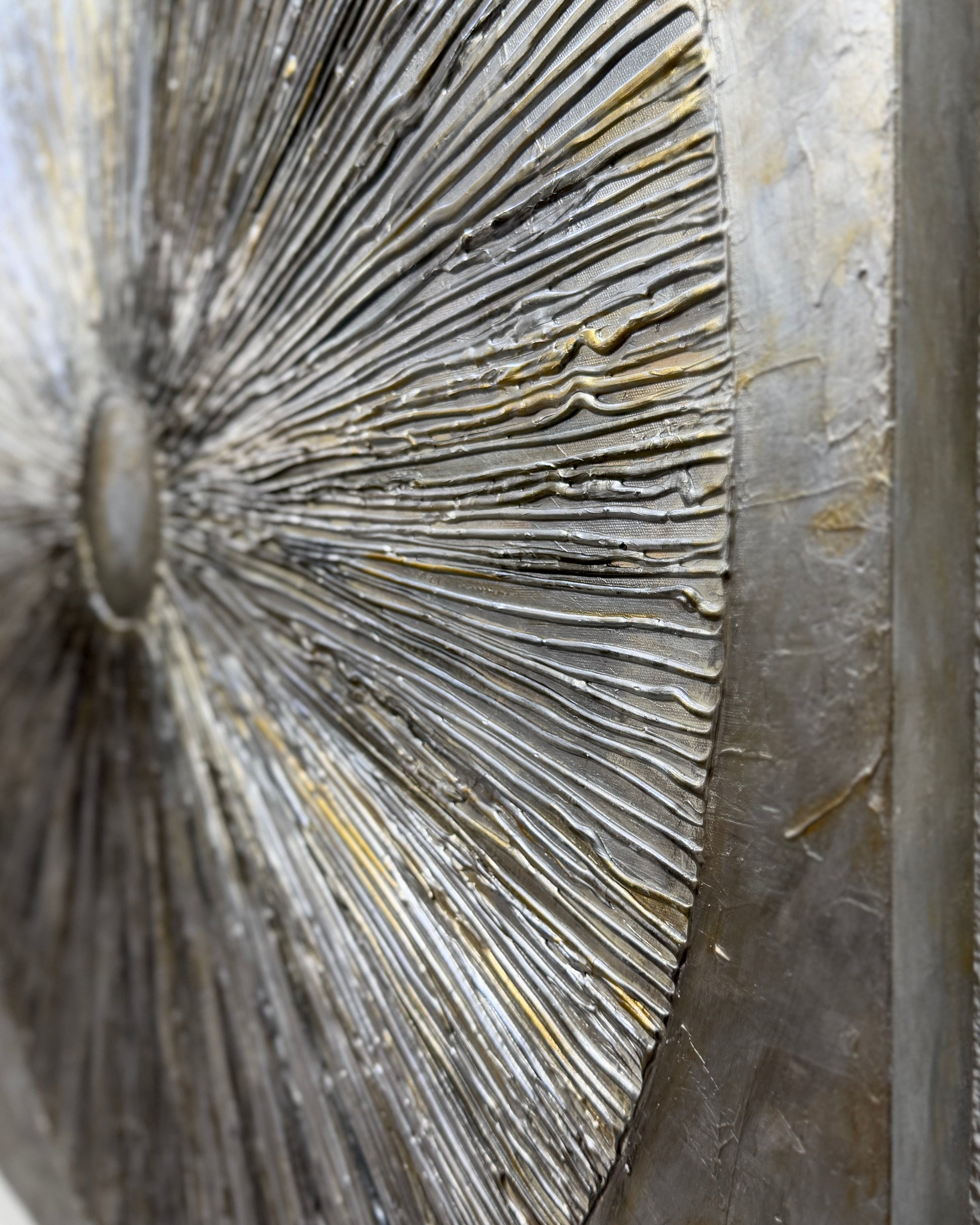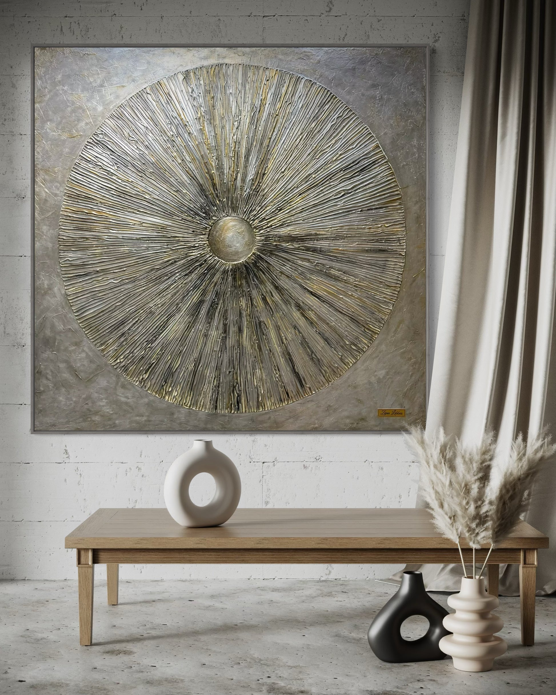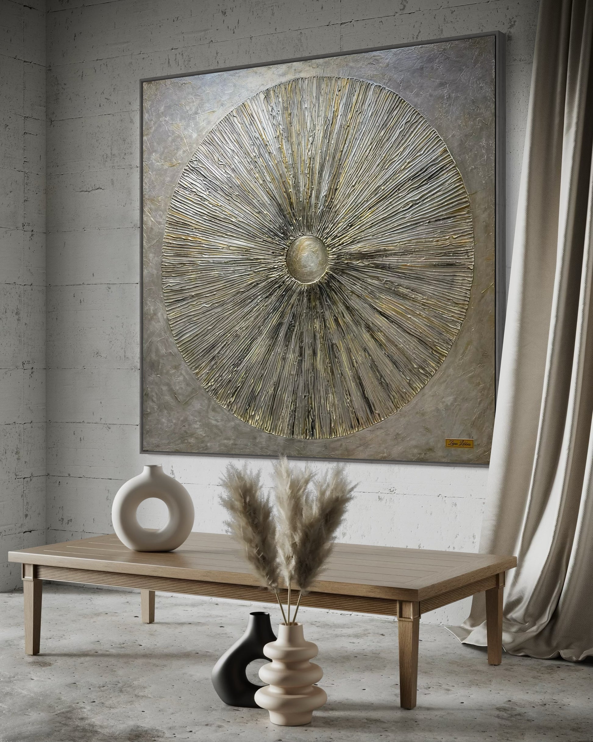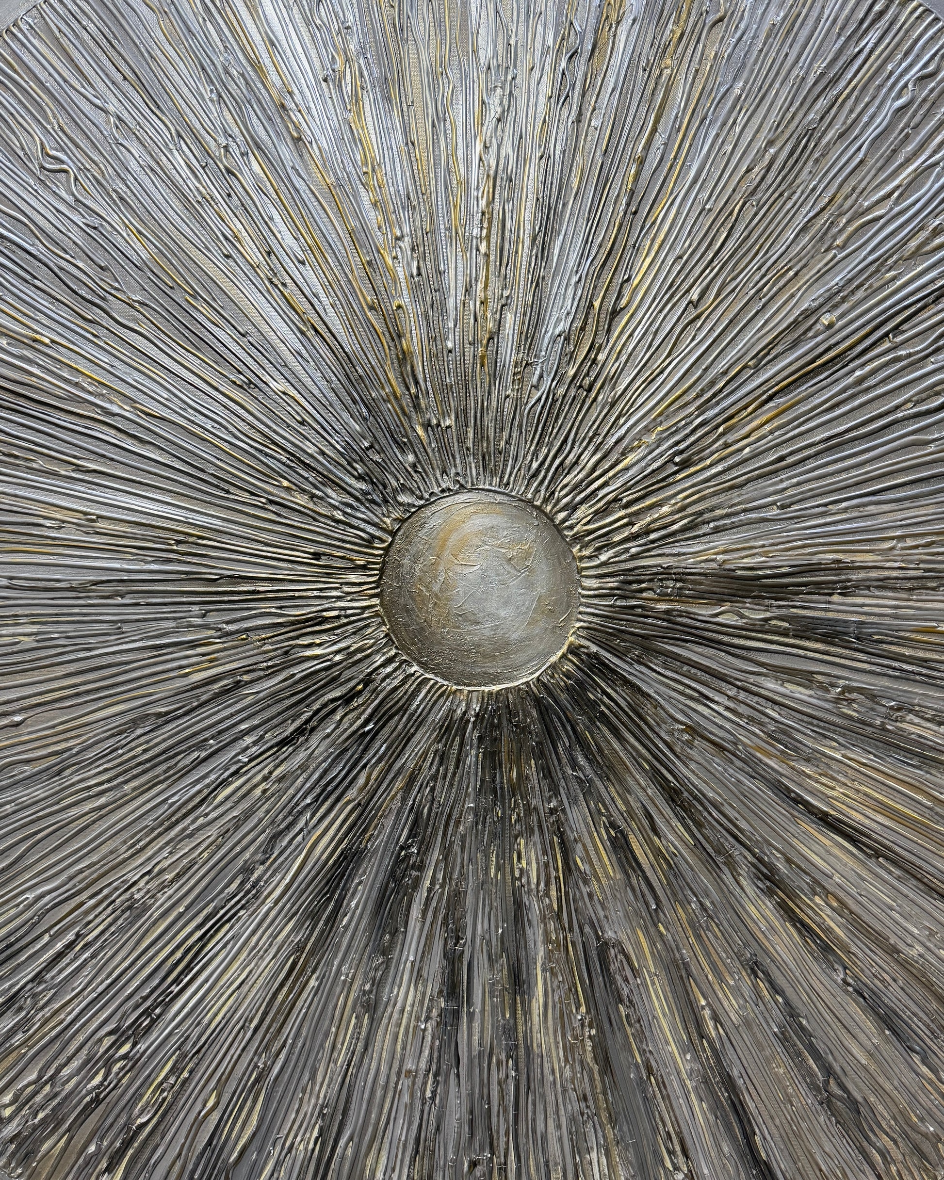 Radiance is all about that quiet kind of light, the kind that comes from within. Zeina wanted this piece to feel calm but strong, like energy slowly expanding outward. The textures and tones came together naturally, almost like the painting knew where it was going before I did.