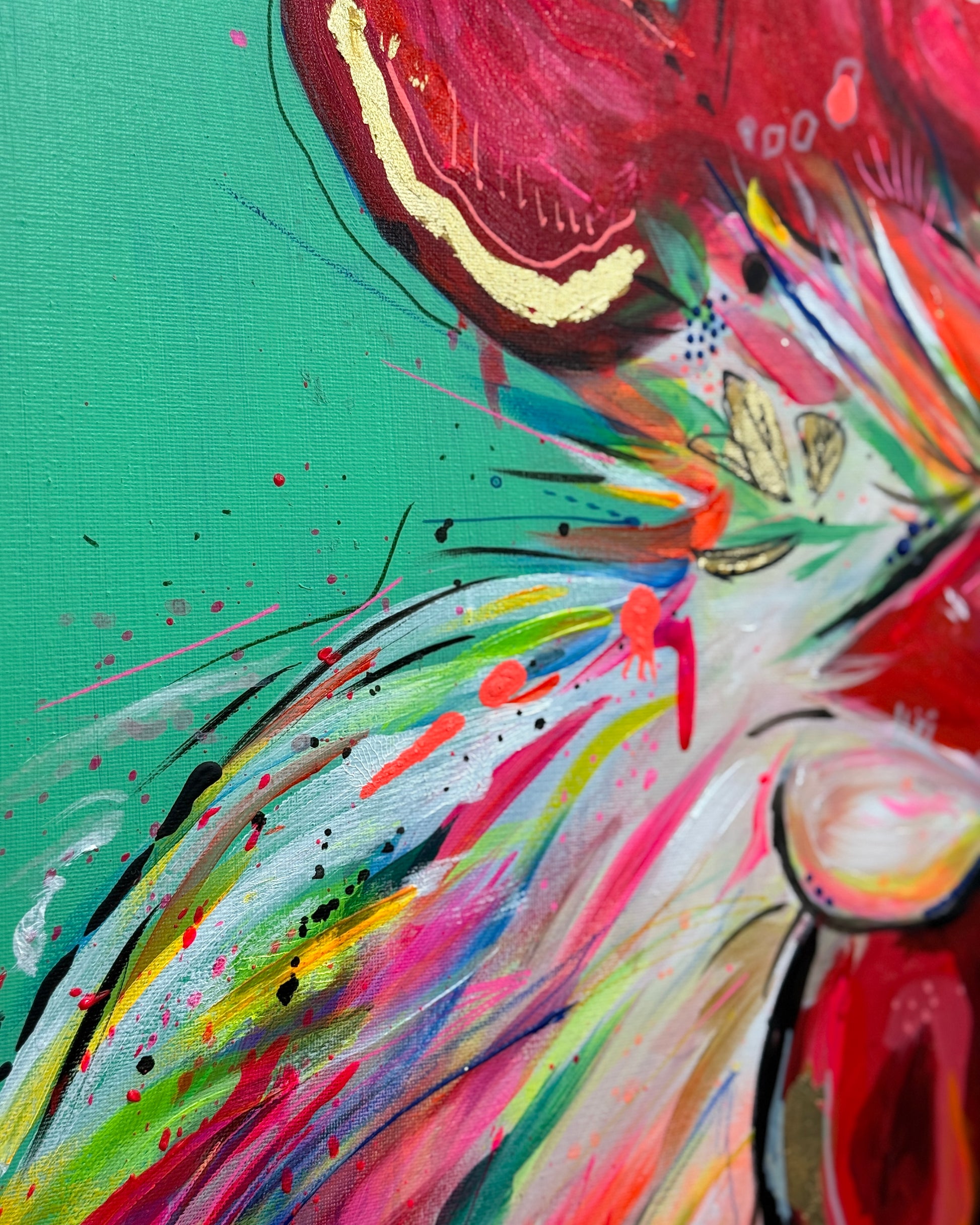 The colors came out wild, unapologetic, and somehow, very him. This piece makes me smile every time I look at it, I hope it brings the same spark to your space too.